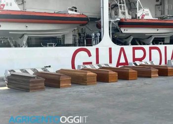 I corpi di sette migranti morti in un naufragio sono stati recuperati e portati a Porto Empedocle. Operazione di soccorso ...