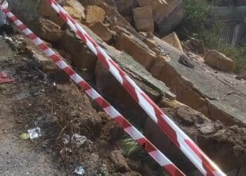Ampia porzione del muro di tufo vicino al serbatoio Rupe Atenea crollata di notte a causa del deterioramento, necessari urgenti ...