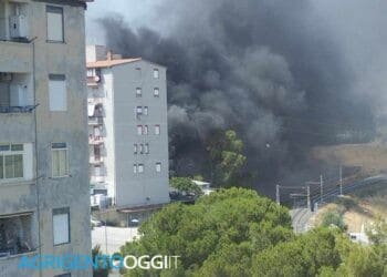 Fiamme e fumo in via Unità d’Italia: rogo vicino ad alcune attività commerciali