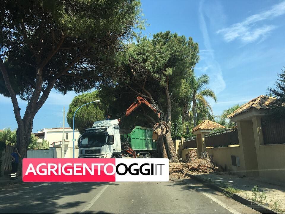 AGRIGENTO. Un altro pino del viale alberato di San Leone è stato tagliato da una ditta specializzata. Pare che l'albero ...