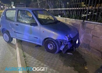 Incidente stradale al Villaggio Mosè, auto finisce contro muro dopo tamponamento: un ferito