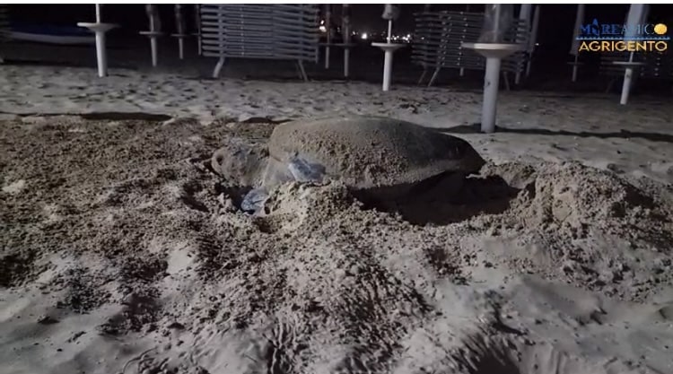 Una tartaruga Caretta Caretta ha scelto gli ombrelloni del lido Kaeso, a Realmonte, per l’ovodeposizione. “Tutto è accaduto intorno le 22 di ieri- dice l’ associazione ambientalista Mareamico che ha documentata la ovodeposizione- a pochi metri dalla Scala dei turchi. Un’enorme tartaruga è arrivata in spiaggia ed ha iniziato a scavare il nido, dopo circa un’ora lo ha ricoperto di sabbia, per difendere le proprie uova.” Mareamico ha allertato i volontari del WWF, della vicina riserva di Torre Salsa, che si occuperanno del monitoraggio e la custodia del nido. “Tra 45 e 90 giorni vedremo i risultati di questo spettacolo della natura”, dicono.