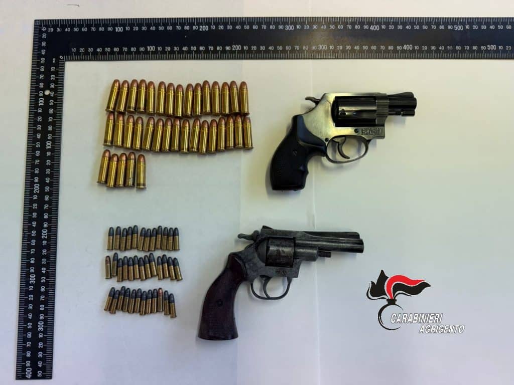 Nel corso delle perquisizioni successive all’arresto odierno, i militari hanno inoltre rinvenuto e sequestrato due revolver, rispettivamente calibro 22 e calibro 38 Special – quest’ultimo con matricola abrasa – oltre a diverso munizionamento.