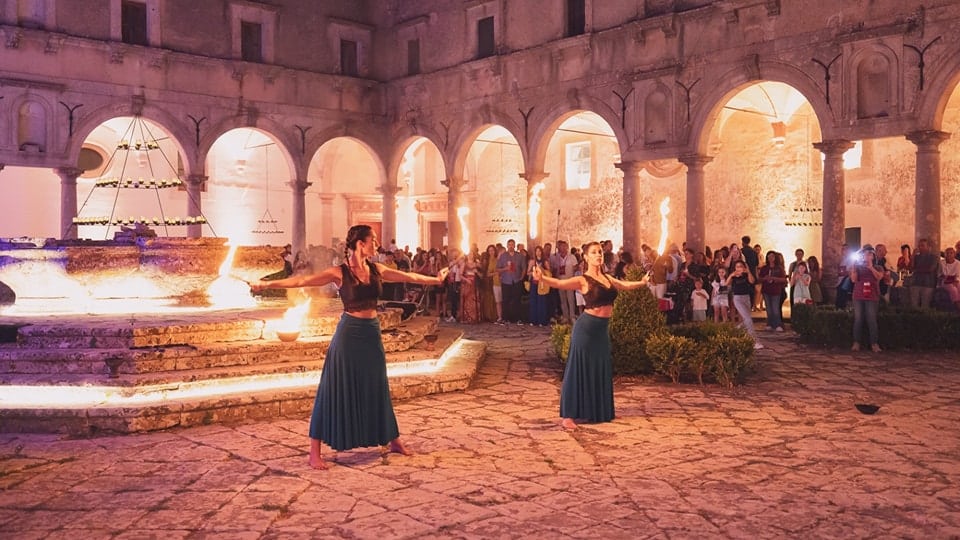 La magica atmosfera dell’Abbazia Santa Maria del Bosco ha incantato il pubblico, rendendo la serata indimenticabile con la musica live degli “Irish Leavens” e il DJ set di Lilian D’Anna. Lo spettacolo delle “Flammes Fatales” ha aggiunto un tocco di magia e divertimento all’evento.