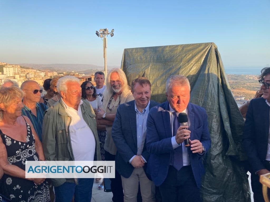 Da oggi, 8 agosto, il piazzale sovrastante la Porta dei Saccajoli in via Empedocle, al centro storico di Agrigento, porta il nome di Tony Cucchiara. La cerimonia di intitolazione ad uno dei più importanti artisti italiani vissuto tra il secolo scorso e questo, nato ad Agrigento, si è svolta nel tardo pomeriggio. Durante la cerimonia , alla presenza tra gli altri del sindaco, Francesco Miccichè, e dei familiari dell’artista, è stato anche consegnato il totem che farà bella mostra di sé con il ritratto di Tony Cucchiara ad opera di Giuseppe Cacocciola. L’opera è stata donata dal Rotary Club di Agrigento. Un grande impegno quello del Rotary , presieduto da Giuseppe La Mendola, che ha seguito passo dopo passo la realizzazione del manufatto. La città, con in testa Michele Guardì, ha così voluto rendere omaggio a Tony Cucchiara, una figura eclettica, il suo talento ha raggiunto i massimi vertici con la sua sterminata produzione artistica in qualità di compositore di musica, autore di musical che hanno riempito i teatri per 40 anni, e che sono stati in tournée a Broadway, in Sudamerica e in Australia, come Pipino il Breve, regista di film, attore, e con una impronta indelebile che ha lasciato agli italiani una guida e una grande eredità artistica. Ecco la motivazione: “Artista eclettico, nel corso della sua lunga e variegata carriera è stato cantante, uomo di teatro e autore firmando musical e programmi televisivi di successo. Uno dei più grandi autori siciliani che va ricordato per l’amore con il quale ha rappresentato in teatro la nostra terra” e per aver firmato numerose commedie musicali, con una chiave del tutto originale rispetto al genere in voga in quegli anni negli Stati Uniti, rivoluzionando lo stile del musical. A cominciare da Caino e Abele del 1973, con Marisa Sannia nei panni di Giovanna D’Arco, in cui affronta il tema della violenza attraverso i secoli e che incontra subito i gusti del pubblico giovanile. Seguono poi altri spettacoli di successo tra cui “Storie di periferia”, ancora con Marisa Sannia, Tragicomica con musiche, “La baronessa di Carini”, “Swing”, “Pipino il breve” del 1978 con Tuccio Musumeci nel ruolo del re di Francia, prodotto dal teatro Stabile di Catania che risulta essere quello di maggior successo, rimasto in cartellone per ben sette stagioni consecutivi e rappresentato anche a Broadway, in Sudamerica e in Australia. Nel ’90, sempre in collaborazione con lo Stabile di Catania, mette in scena “Don Chiosciotto di Girgenti” con Lando Buzzanca, e ancora L’altra “Cenerentola” e Il “Conte di Montecristo”, scritti entrambi insieme al figlio Gianluca, musicista. Per 15 anni è stato uno degli autori di Uno mattina e In famiglia, la trasmissione Rai del regista Michele Guardì”.