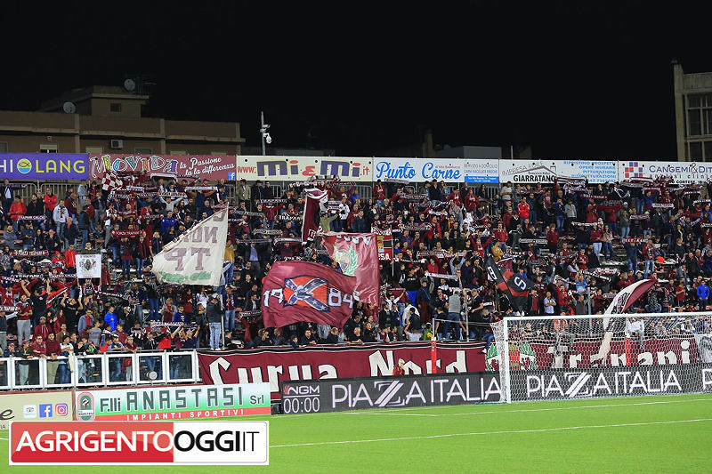 L’Akragas Città dei Templi rende noto che, su determinazione dell’Osservatorio Nazionale sulle Manifestazioni Sportive, la partita contro il Trapani, in programma domani, mercoledì 21 marzo, allo stadio “Nicola De Simone” di Siracusa e segnalata come gara alto profilo di rischio, si giocherà senza la presenza dei sostenitori ospiti. La società biancoazzurra non può far altro che prendere atto della decisione della Prefettura di Siracusa che, per motivi di ordine pubblico, ha disposto il divieto di trasferta per i tifosi trapanesi.