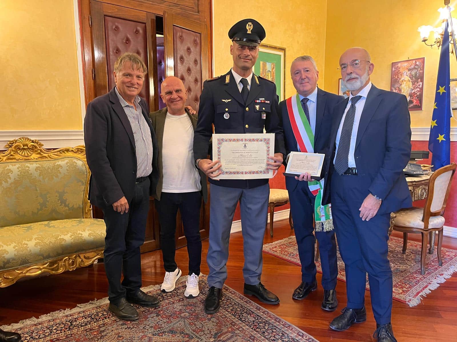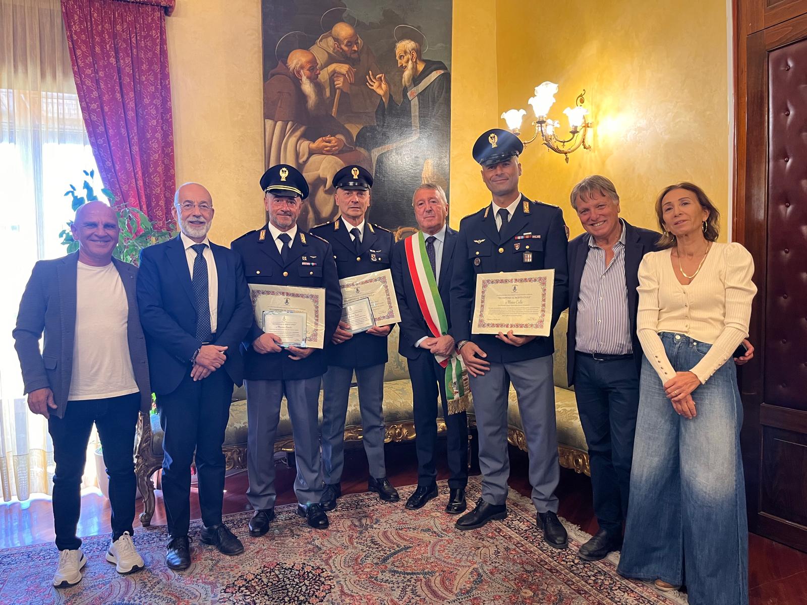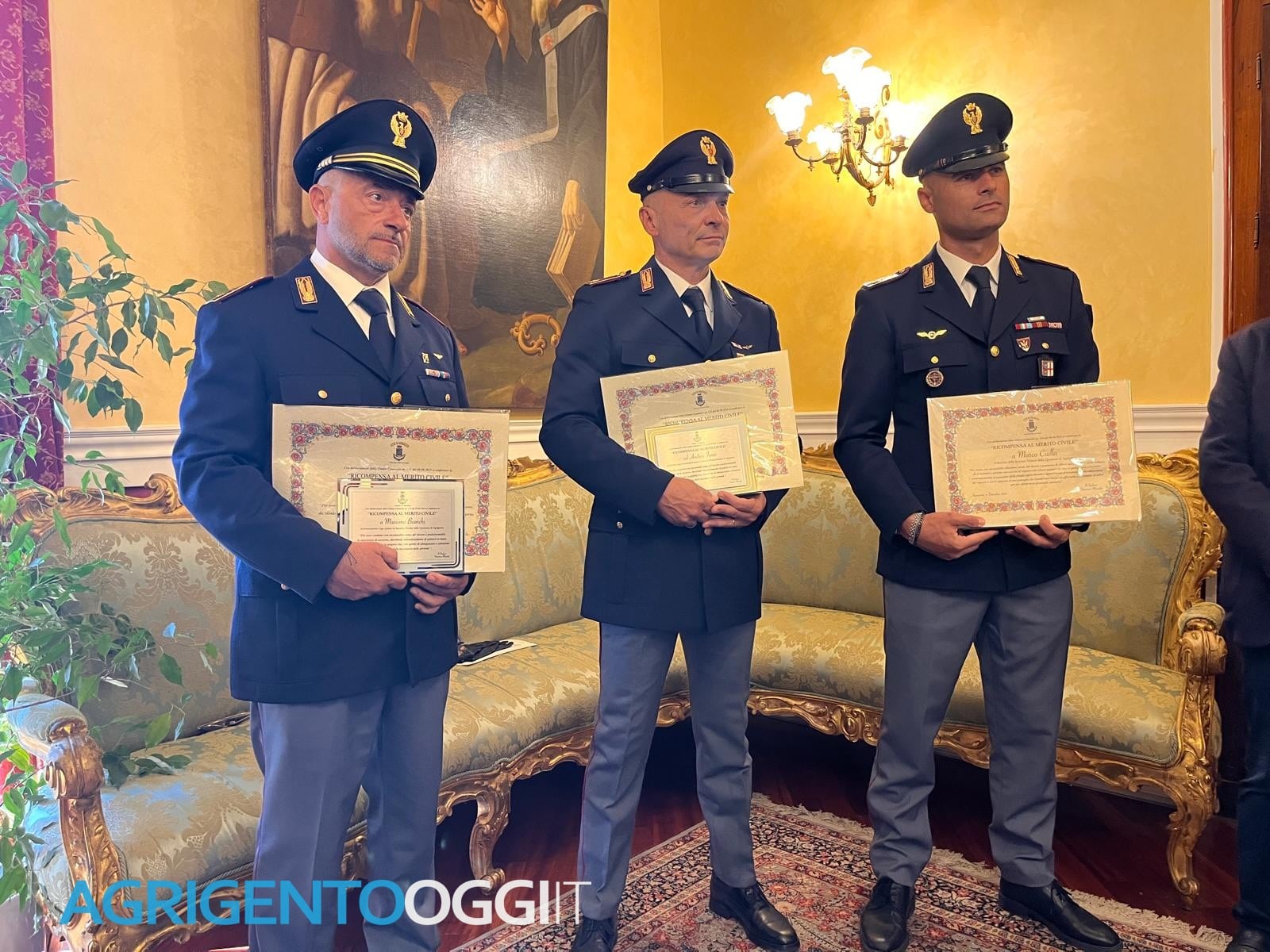 Premiati tre agenti della Polizia di Stato con delle ricompense al merito civile perché autori di gesti eroici nel corso dell’attuale anno. Questa mattina, presso il Palazzo comunale di Agrigento, si è svolta una cerimonia solenne durante la quale il sindaco, Franco Miccichè, ha consegnato attestati di benemerenza al merito civile ai tre poliziotti che si sono distinti per coraggio, senso del dovere e alto spirito di servizio, il tutto dimostrato in occasione di due distinti interventi che hanno permesso di salvare delle vite umane. Tutti e tre, liberi dal servizio, sono intervenuti con prontezza e determinazione: uno per salvare un giovane da un tentativo di suicidio, gli altri due per aver soccorrere un ragazzo in pericolo di annegamento.