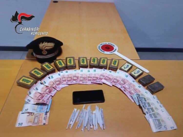 Successivamente, le attività di perquisizione presso l’abitazione dei due hanno permesso di rinvenire e sequestrare ulteriori 13 panetti di hashish per un peso complessivo di 1,280 kg., oltre a 270 euro in contanti, presumibilmente provento dell’attività di spaccio. Il tutto sottoposto a sequestro. Gli arrestati, dopo le formalità di rito, su disposizione della Procura della Repubblica di Agrigento, sono stati sottoposti agli arresti domiciliari in attesa dell’udienza di convalida.