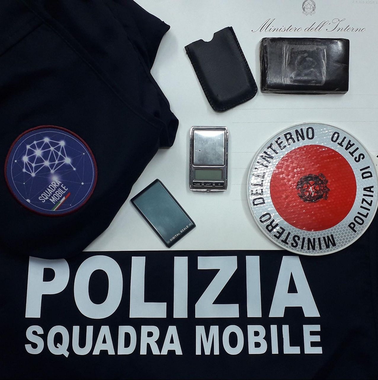 Nel corso dei servizi di prevenzione e repressione dei reati inerenti gli stupefacenti, a seguito di diversi controlli, i poliziotti nel corso di una perquisizione personale e domiciliare a carico di P.E., hanno rinvenuto un panetto di sostanza stupefacente, del tipo hashish, del peso di 100 grammi, mentre presso la sua abitazione trovato e sequestrato un bilancino elettronico di precisione.