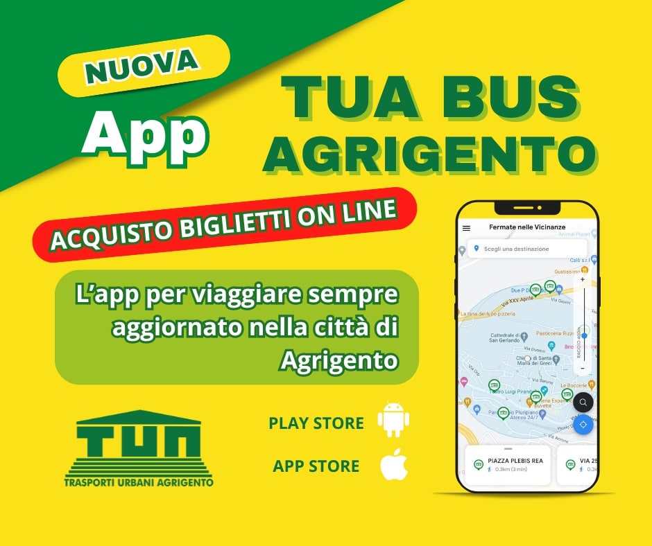 La TUA (Trasporti Urbani Agrigento) presenta la nuova App per facilitare l’acquisto di biglietti e abbonamenti del trasporto pubblico urbano.