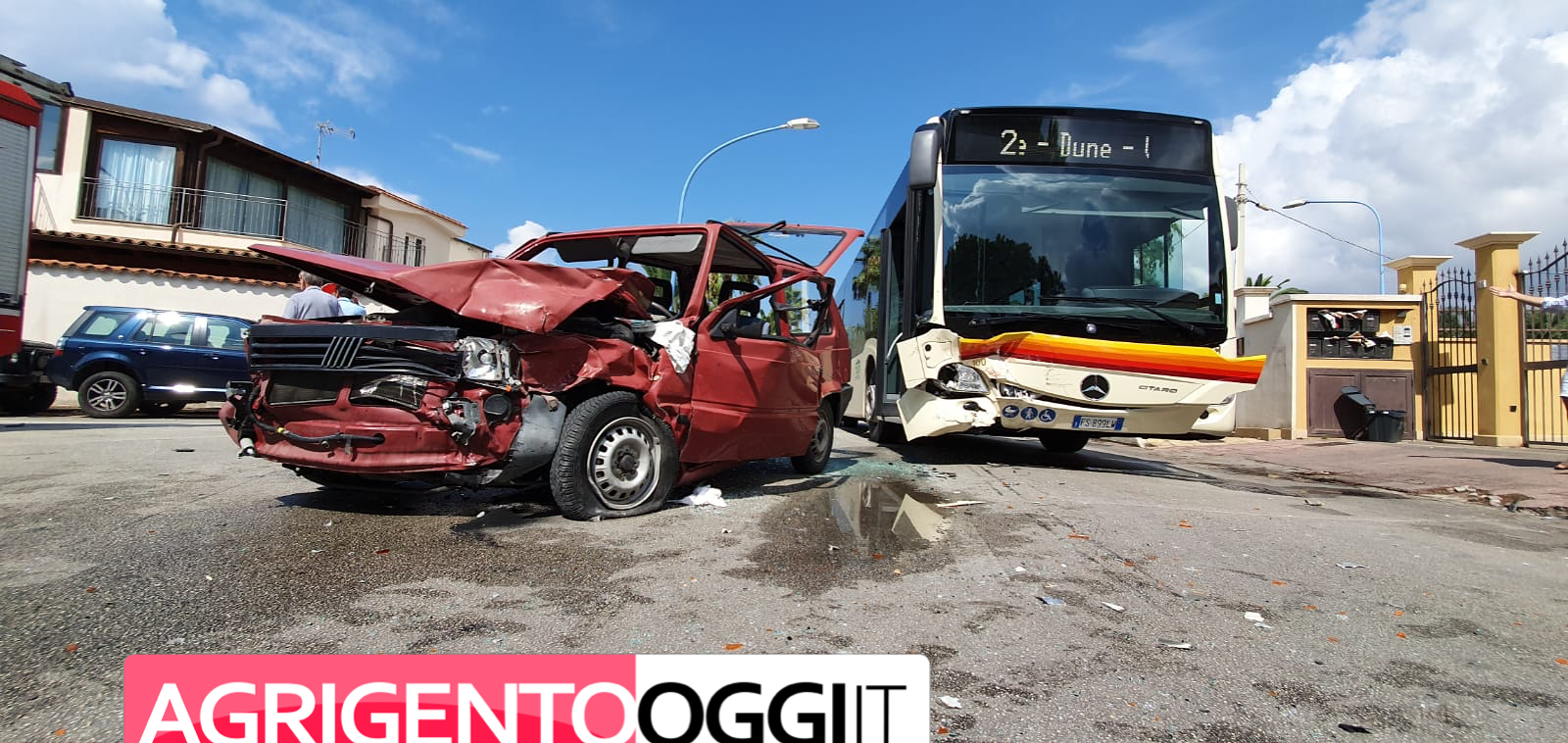Un incidente è avvenuto stamattina in viale dei Pini e ha coinvolto una Fiat Panda e un autobus della linea 2 della Tua (Trasporti Urbani Agrigento).