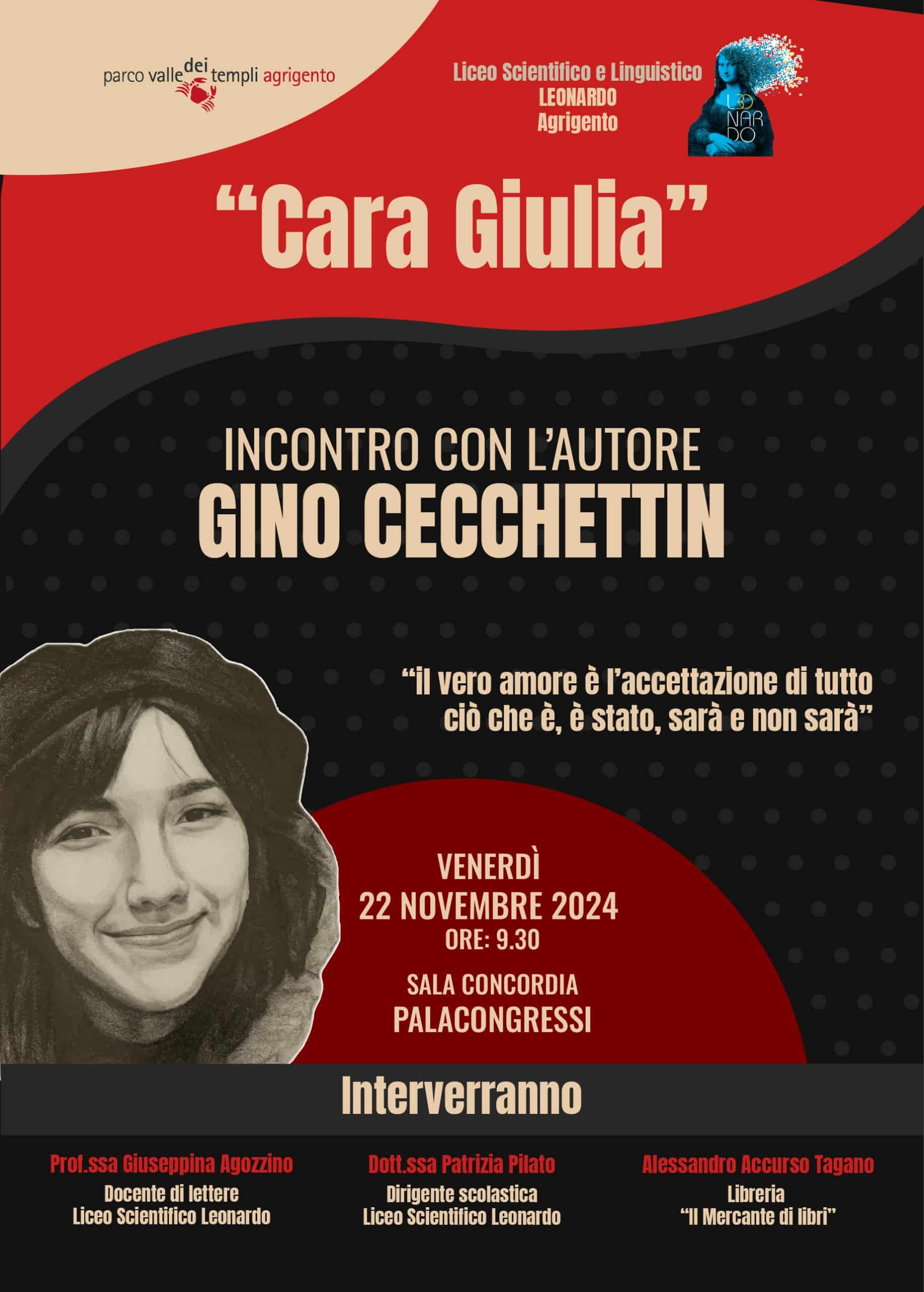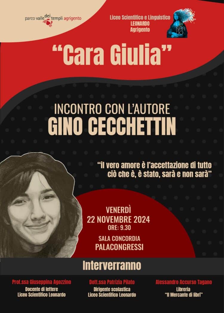 Un appuntamento carico di emozioni e riflessioni profonde si terrà venerdì 22 novembre 2024, alle ore 9:30, presso la Sala Concordia del Palacongressi di Agrigento. Protagonista dell’evento sarà Gino Cecchettin, autore del toccante libro “Cara Giulia”, un’opera che racconta con delicatezza e intensità l’accettazione e l’amore incondizionato.