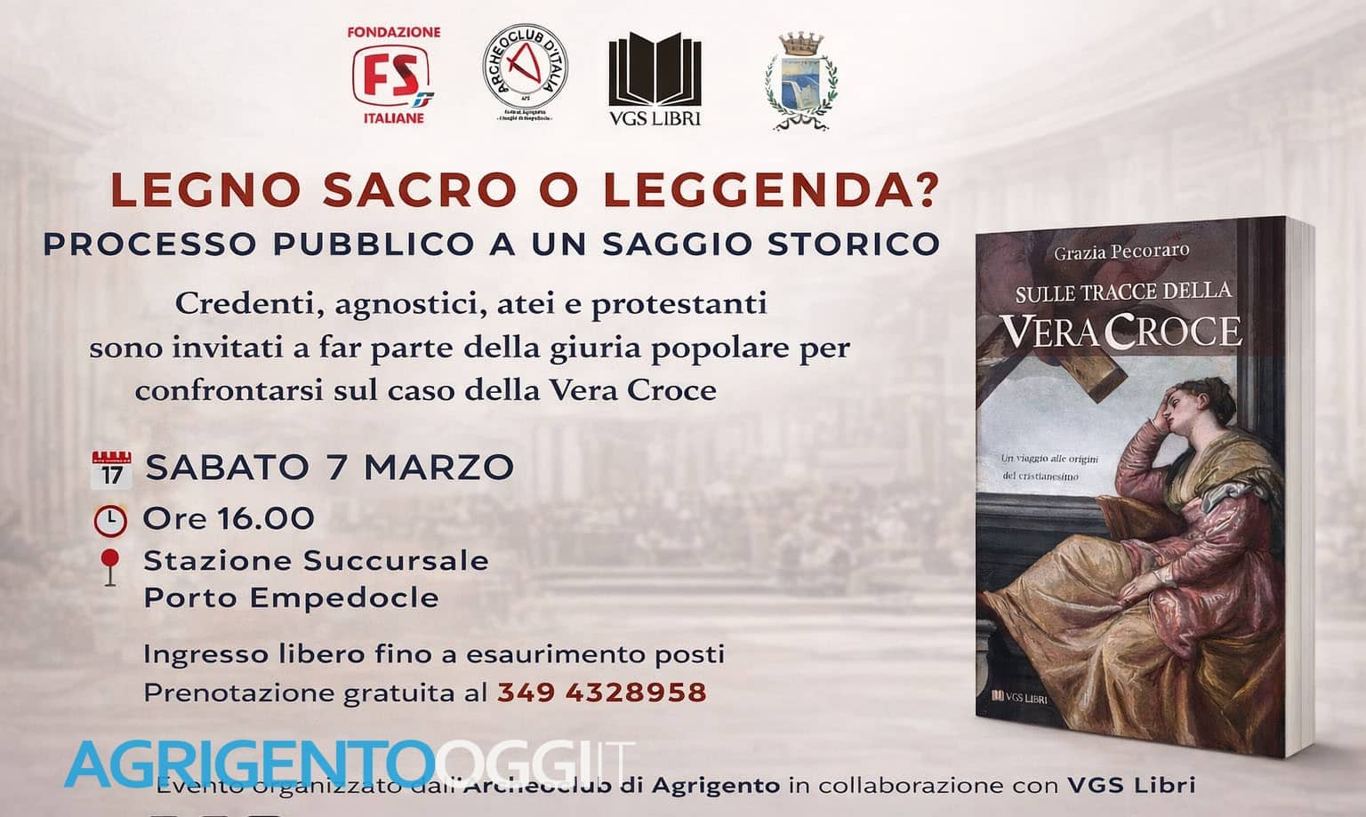 Sabato 7 marzo alle ore 16, presso la Stazione Succursale di Porto Empedocle, la presentazione del saggio Sulle tracce della Vera Croce. Un viaggio alle origini del cristianesimo di Grazia Pecoraro assumerà la forma di un vero e proprio dibattimento processuale.