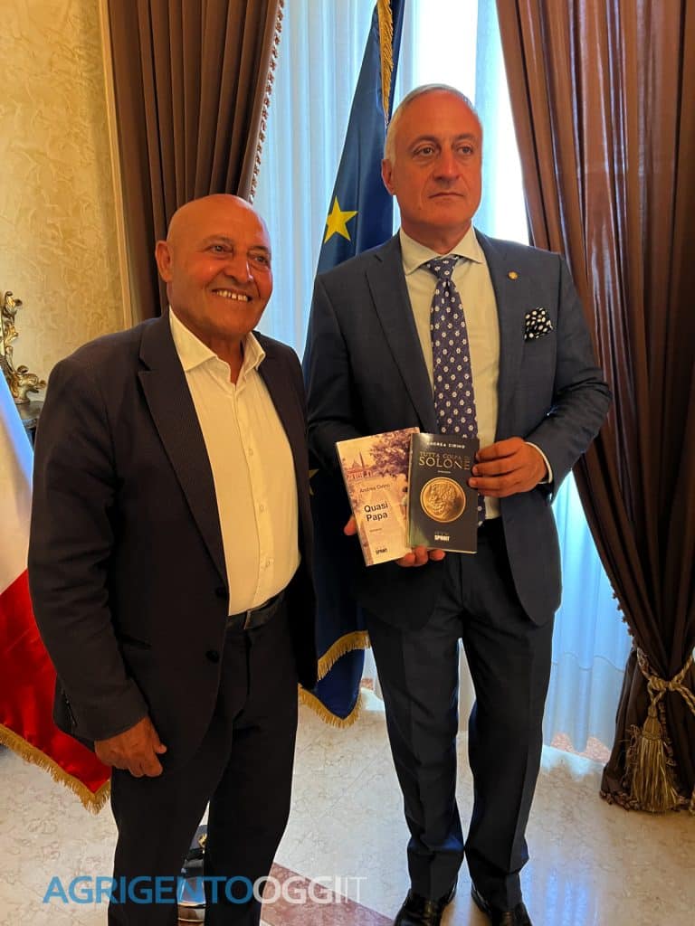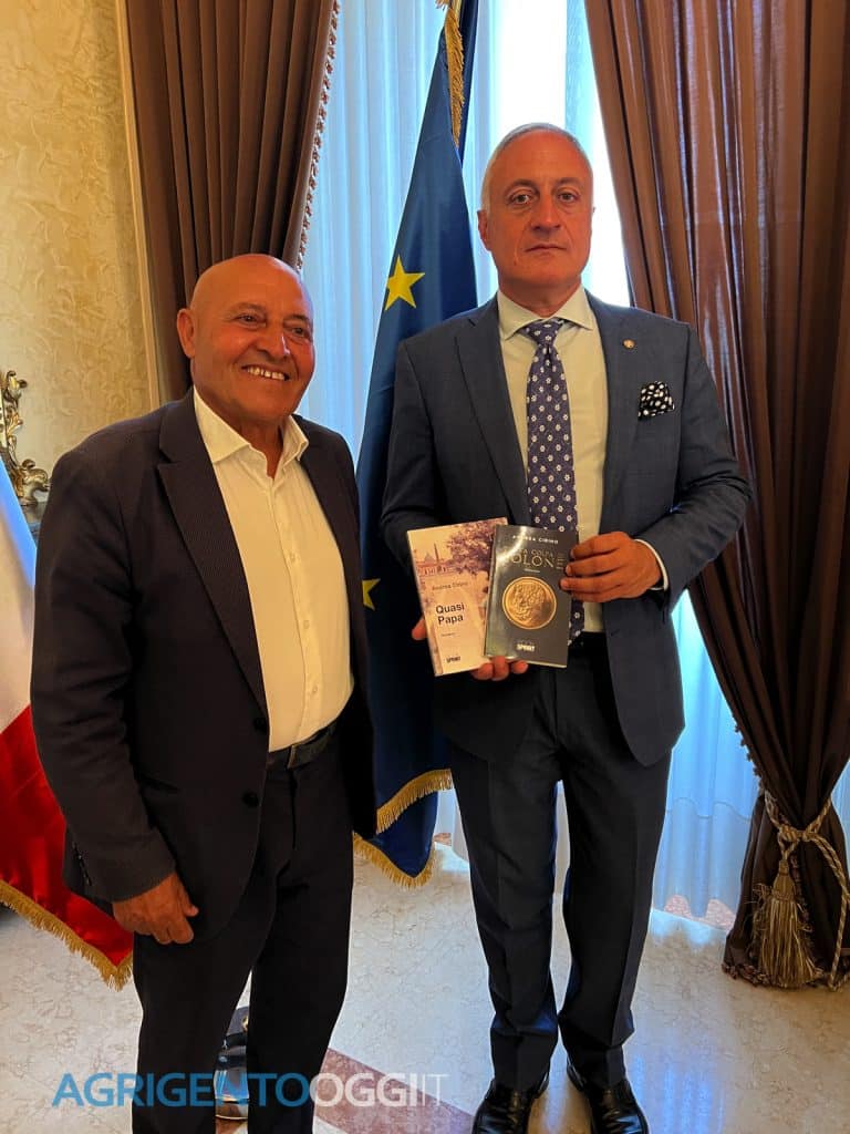 In un momento dedicato alla cultura e all’unione tra istituzioni, il Vice Presidente della Fondazione Teatro L. Pirandello, Andrea Cirino, ha fatto un regalo speciale al Prefetto di Agrigento, Filippo Romano. Durante la firma del Protocollo d’Intesa, Cirino ha omaggiato il Prefetto con le sue ultime opere letterarie: “Quasi Papa” e “Tutta colpa di Solone”.