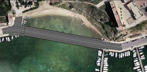Tale viadotto, lungo più di 130 metri, verrebbe sostenuto da piloni che dal fondo marino si ergono per reggere un ponte, proprio di fronte un’area di interesse archeologico (Cala Salina).