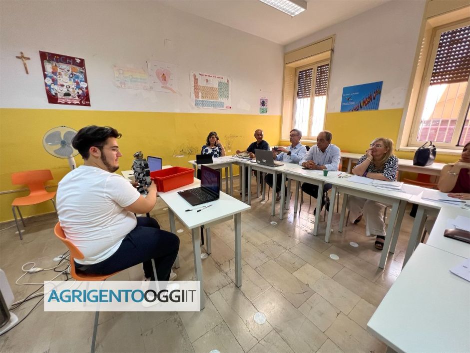 Un colloquio per due. Alessio Farruggia e Sofia Gucciardo della quinta A dell’istituto Leonardo di Agrigento, indirizzo scienze applicate, davanti alla commissione d’esame, si sono presentati con un robot che hanno progettato e realizzato. Una creazione che non è passata inosservata agli occhi dei commissari. Agli esami di Stato, dunque, approda l’intelligenza artificiale, ovvero, l’abilità di una macchina di mostrare capacità umane quali il ragionamento, l’apprendimento, la pianificazione e la creatività. Il colloquio orale, ovviamente, è stato fatto singolarmente, come sempre avviene agli esami di Stato. Ad accompagnare i ragazzi nel progetto è stato il docente di informatica, Luigi Martino Scandaglio. Non basta un robot per superare un esame di Stato, i ragazzi hanno risposto ad altre domande dovendo dimostrare la preparazione anche in altre materie. La specificità del percorso «scienze applicate» è quella di fornire allo studente competenze particolarmente avanzate nell’ambito scientifico, informatico e tecnologico. Dopo il diploma Alessio andrà a studiare architettura a Palermo, mentre Sofia Scienze Politiche a Roma.