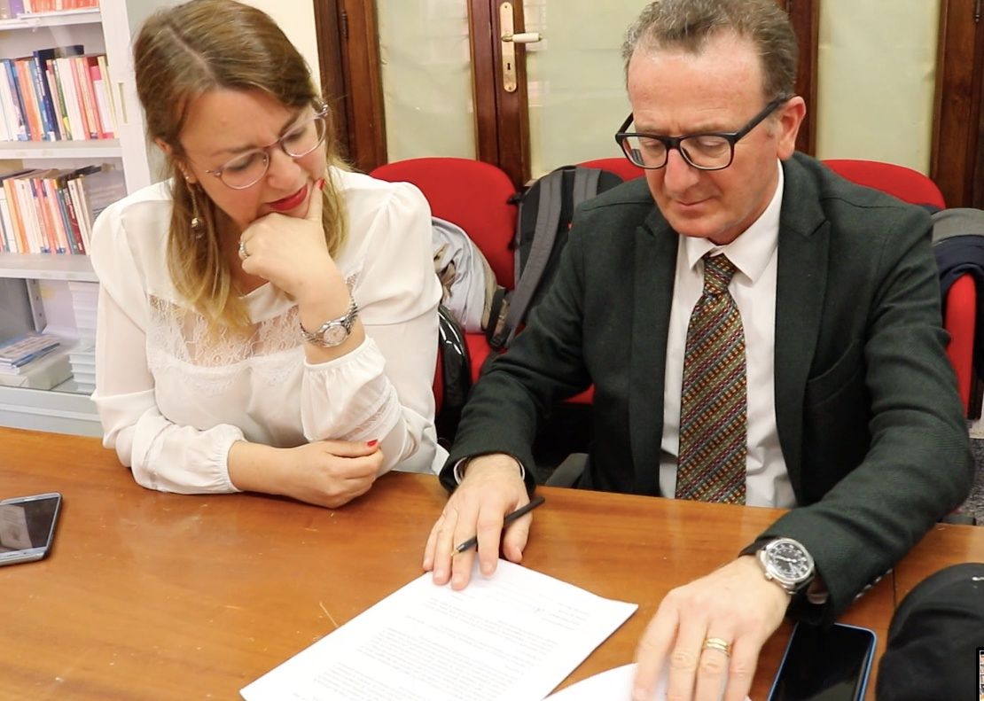 Nella FOTO: Alberto Avenia presiente Ordine Ingegneri Agrigento alla firma con il vicesindaco Elisa Virone