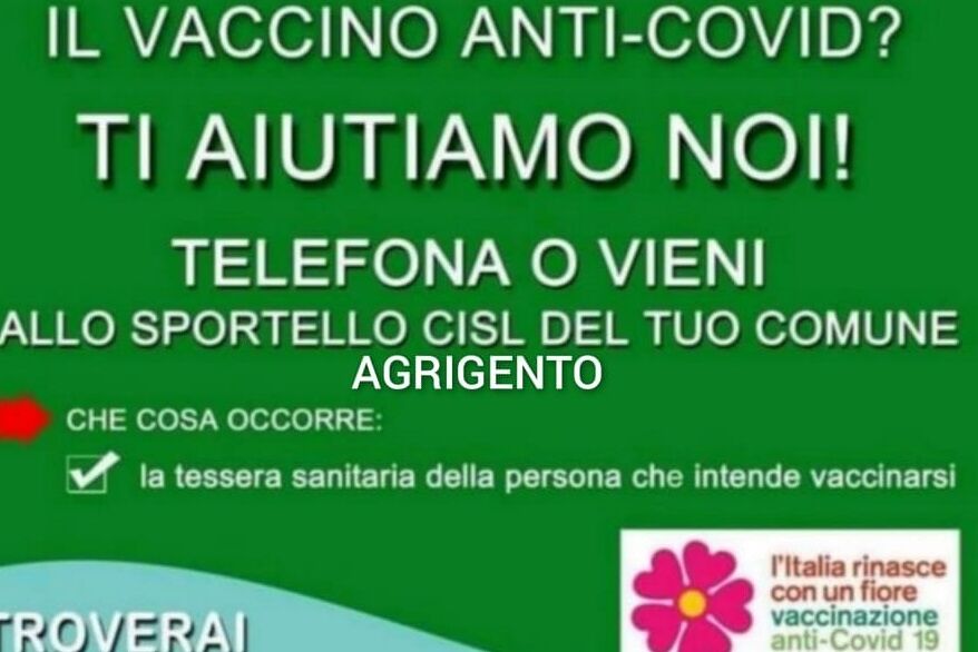 La Federazione dei Pensionati (Fnp) e le Associazioni Anteas unite contro la pandemia. Le strutture attive nelle province di Agrigento, Caltanissetta, Enna hanno predisposto un servizio gratuito per aiutare gli anziani ad effettuare la prenotazione telematica prevista dalla Regione Sicilia per la vaccinazione anti Covid. Per fissare l’incontro con gli operatori e i volontari Anteas, che saranno presenti anche nelle sedi Cisl dei comuni delle tre province, basterà telefonare ai numeri dedicati: Agrigento: 0922594886 – 092262980 Caltanissetta: 093421916 – 331901748, Enna 0935510927 – 3358351110.