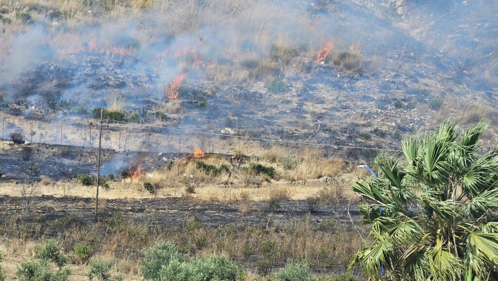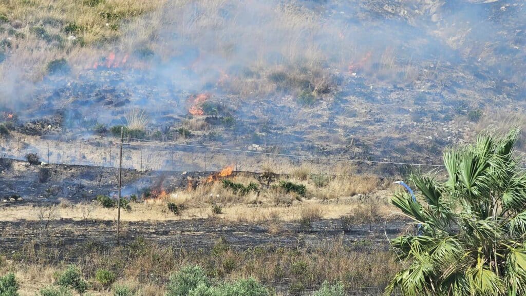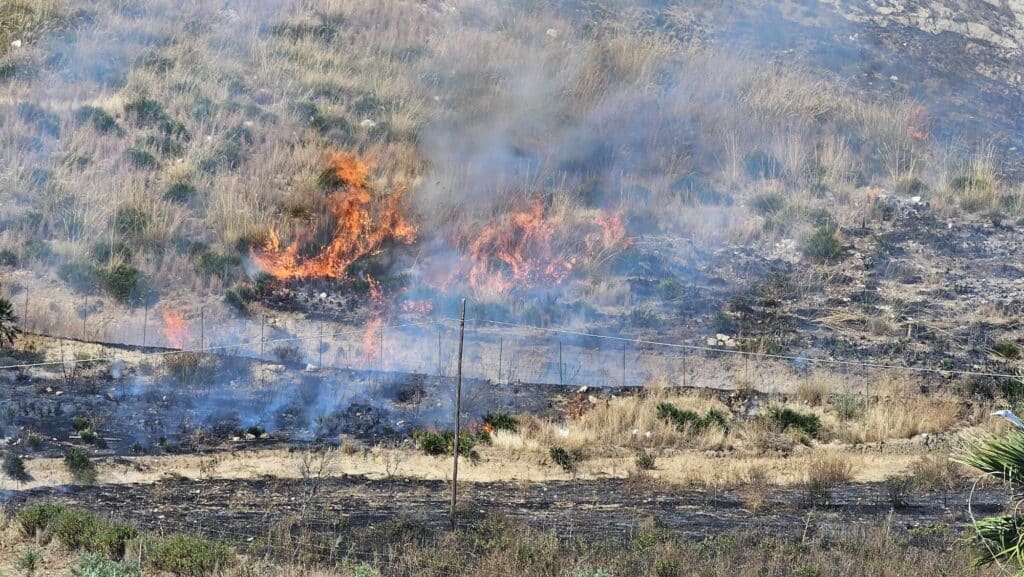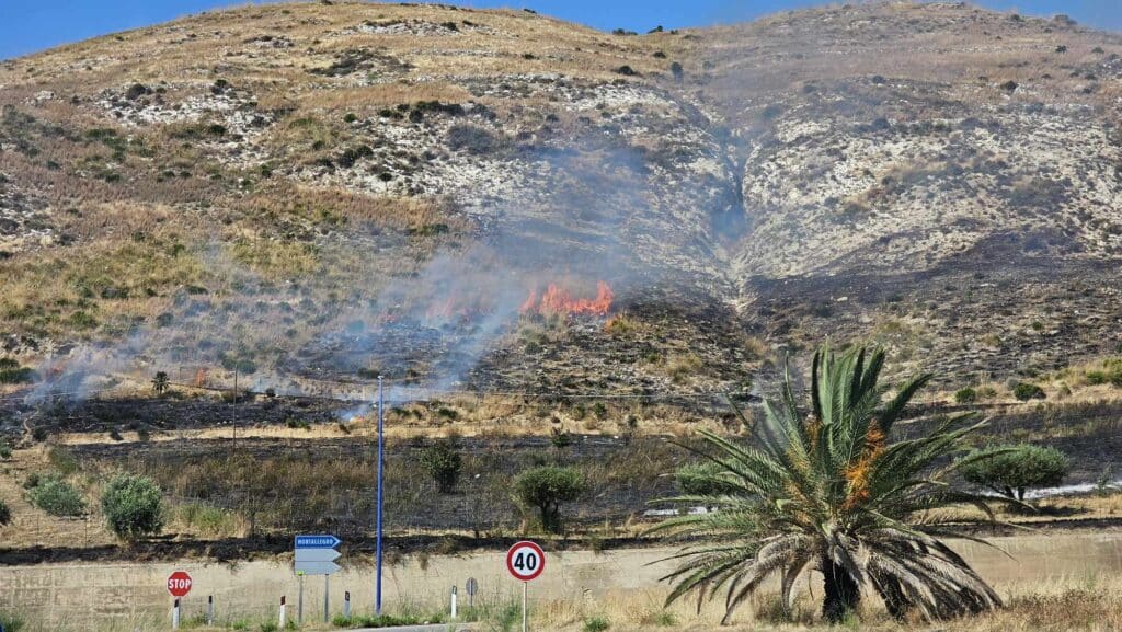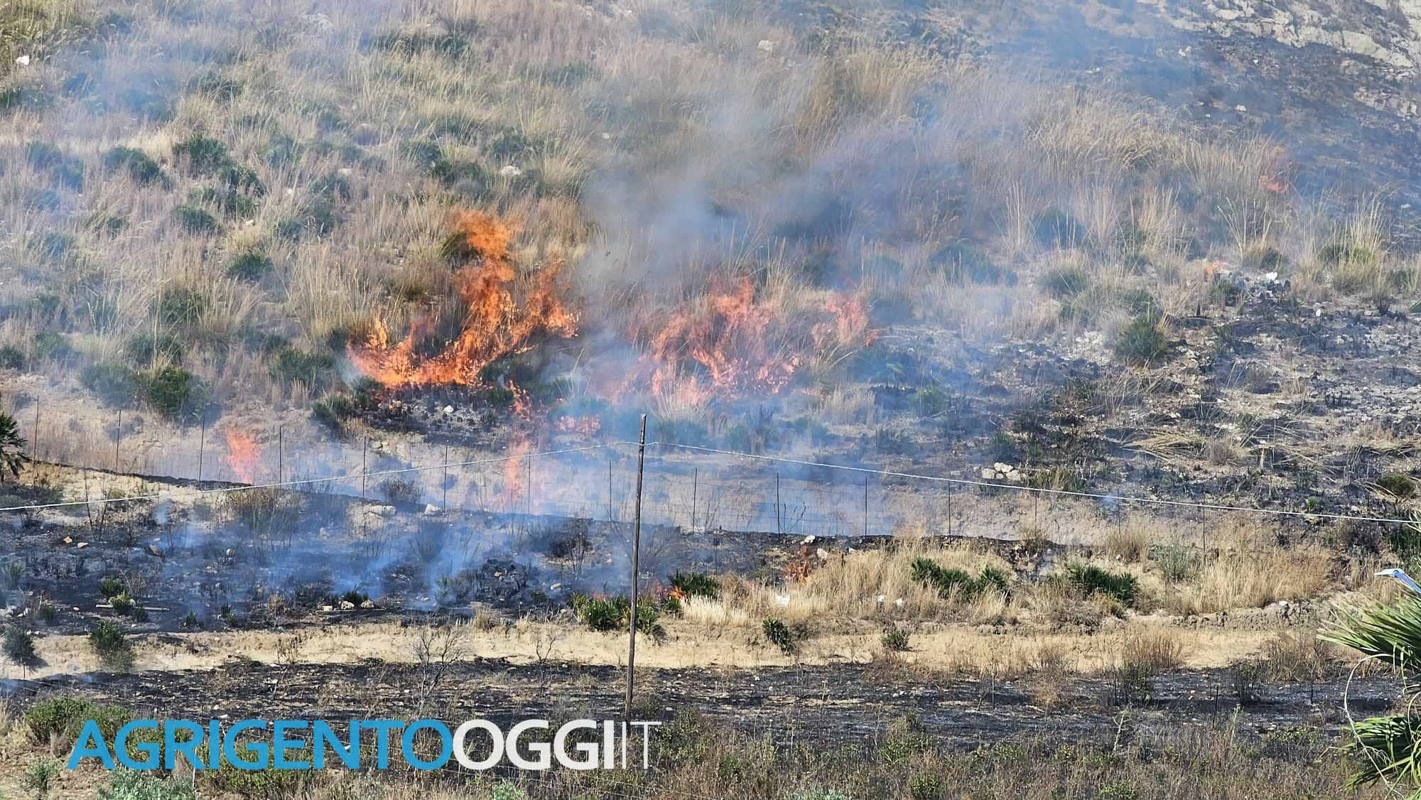 C’è quasi sicuramente la mano di un piromane dietro all’incendio, appiccato ai campi coperti dall’erba secca, che propagatosi ha lambito case di campagne e alcune aziende e ha carbonizzato alberi, sterpaglie e varia vegetazione, tra le zone collinari lungo la strada statale 115, poco dopo l’abitato di Montallegro. Sono stati alcuni passanti a notare fiamme altissime e fumo.