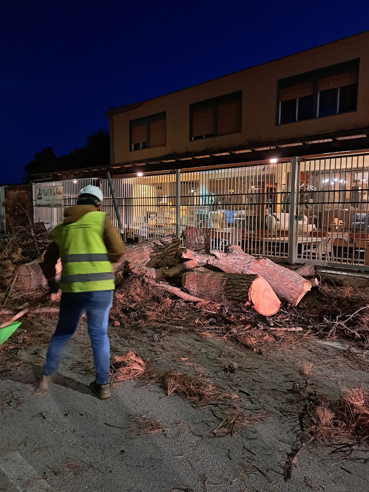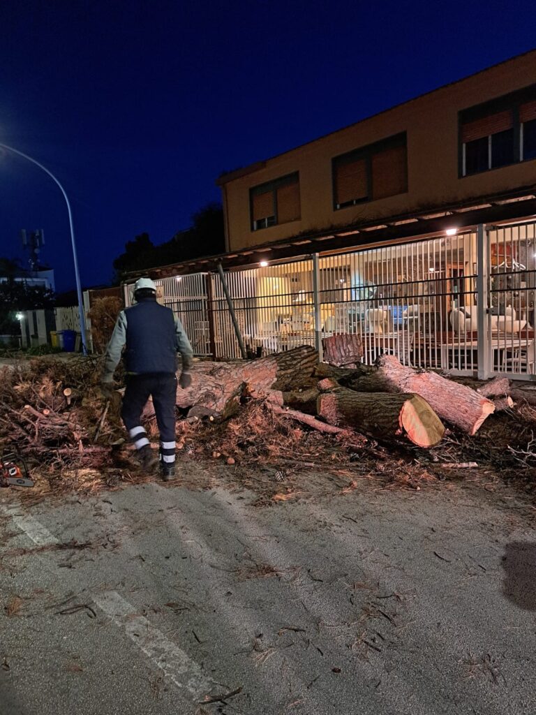 L’ultimo episodio si è verificato proprio davanti a un noto negozio di mobili, dove un pino è stato abbattuto con l’intervento dei Vigili del Fuoco. La Polizia Municipale ha provveduto a gestire il traffico per evitare disagi alla viabilità.