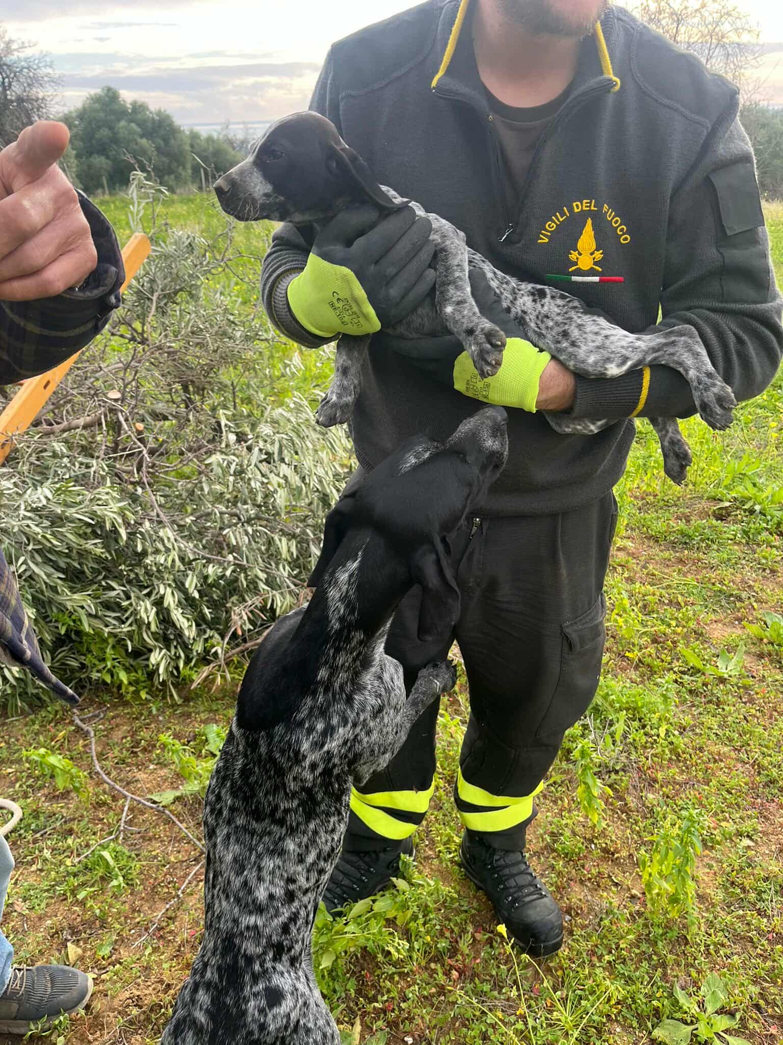 Vigili del fuoco salvano tre cuccioli di cane caduti in un pozzo artesiano