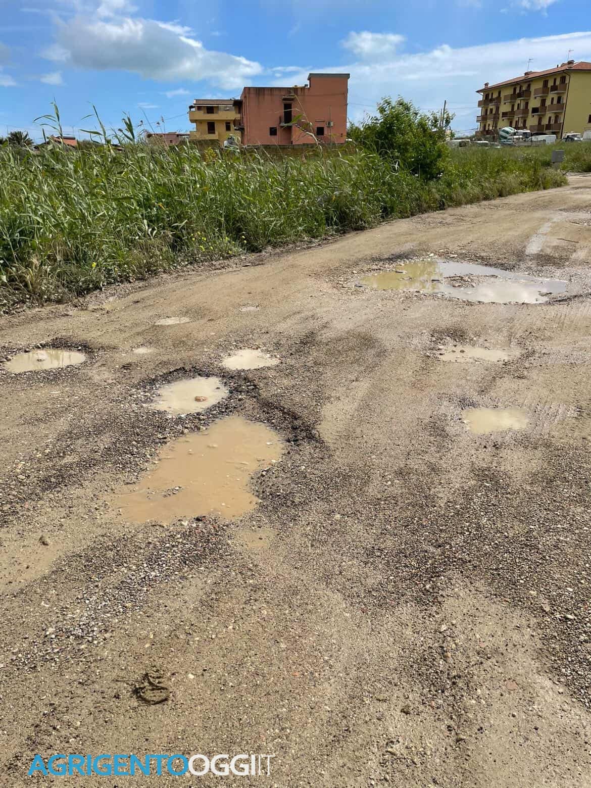 Una criticità evidente dalle immagini: tratti completamente sterrati, avvallamenti e pozzanghere che rendono la carreggiata difficile da percorrere, soprattutto dopo la pioggia.