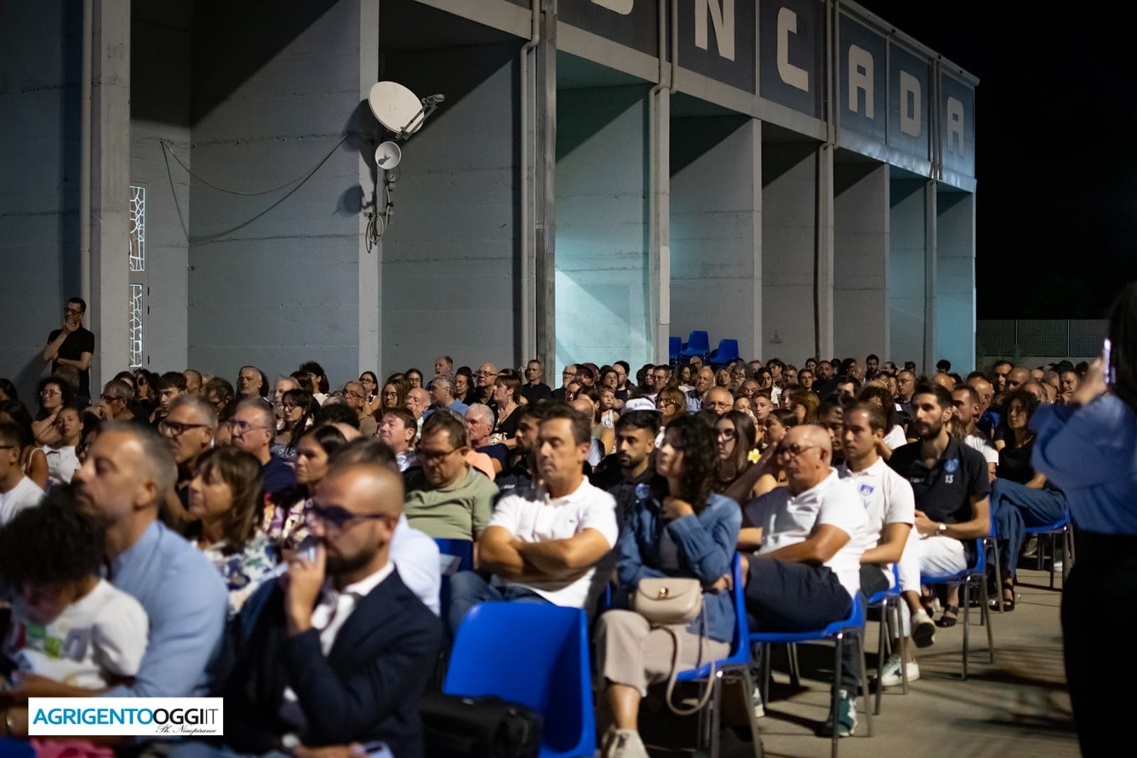 Accanto a lui si sono alternati coach Devis Cagnardi e i membri dello staff tecnico, pronti a guidare un gruppo giovane e determinato. Sul palco, anche una delegazione dell’Akragas SLP, ospite speciale della serata, a conferma del legame che unisce le realtà sportive cittadine. A rendere ancora più speciale l’evento ci ha pensato la conduzione brillante di Eliana Chiavetta, che ha guidato con ritmo e ironia la presentazione della squadra. La serata è poi proseguita in festa con la musica live dei Soul Band, regalando al pubblico energia ed emozioni fino a tarda sera.