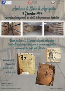 Martedì 3 dicembre, in occasione della “Giornata internazionale dei diritti delle persone con disabilità“, l’Archivio di Stato di Agrigento apre il proprio patrimonio ai visitatori. Come stabilito dal “Programma di azione mondiale per le persone disabili” – istituito nel 1981 dall’Assemblea generale dell’ONU – la Giornata intende ribadire la trasformazione in atto verso una società aperta e coinvolgente per tutti – dichiara la direttrice dell’Archivio Rosanna Florio.