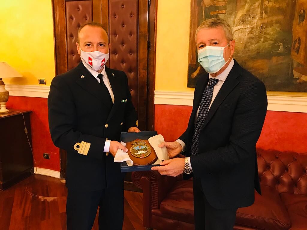 Visita di cortesia al sindaco Franco Miccichè del nuovo comandante della Capitaneria di porto di Porto Empedocle, dott. Serafino Fabio. Il Comandante di Fregata si è insediato lo scorso 11 settembre subentrando al parigrado Gennaro Fusco che è stato a Porto Empedocle per oltre due anni. E’ stata l’occasione, oltre che per i reciprochi auguri di buon lavoro, anche per cominciare a mettere le basi di una proficua collaborazione visto che Agrigento si affaccia sul mare e quindi vi sono competenze che s’incontrano. Nei prossimi giorni verranno concordati nuovi incontri più tecnici e allargati a Demanio marittimo e Forestale