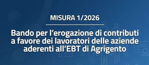 Il bando integrale e la modulistica sono disponibili sul sito ufficiale www.ebtagrigento.it. Per informazioni: tel. 0922 22791 — email [email protected]. Con il lancio della Misura n. 1/2026, l’Ente Bilaterale del Terziario di Agrigento ribadisce la propria missione istituzionale: valorizzare la sinergia tra imprese e organizzazioni sindacali per costruire una rete di protezione sociale capillare ed efficace, capace di sostenere concretamente il tessuto produttivo locale a partire dal benessere di chi ne rappresenta la risorsa più preziosa.